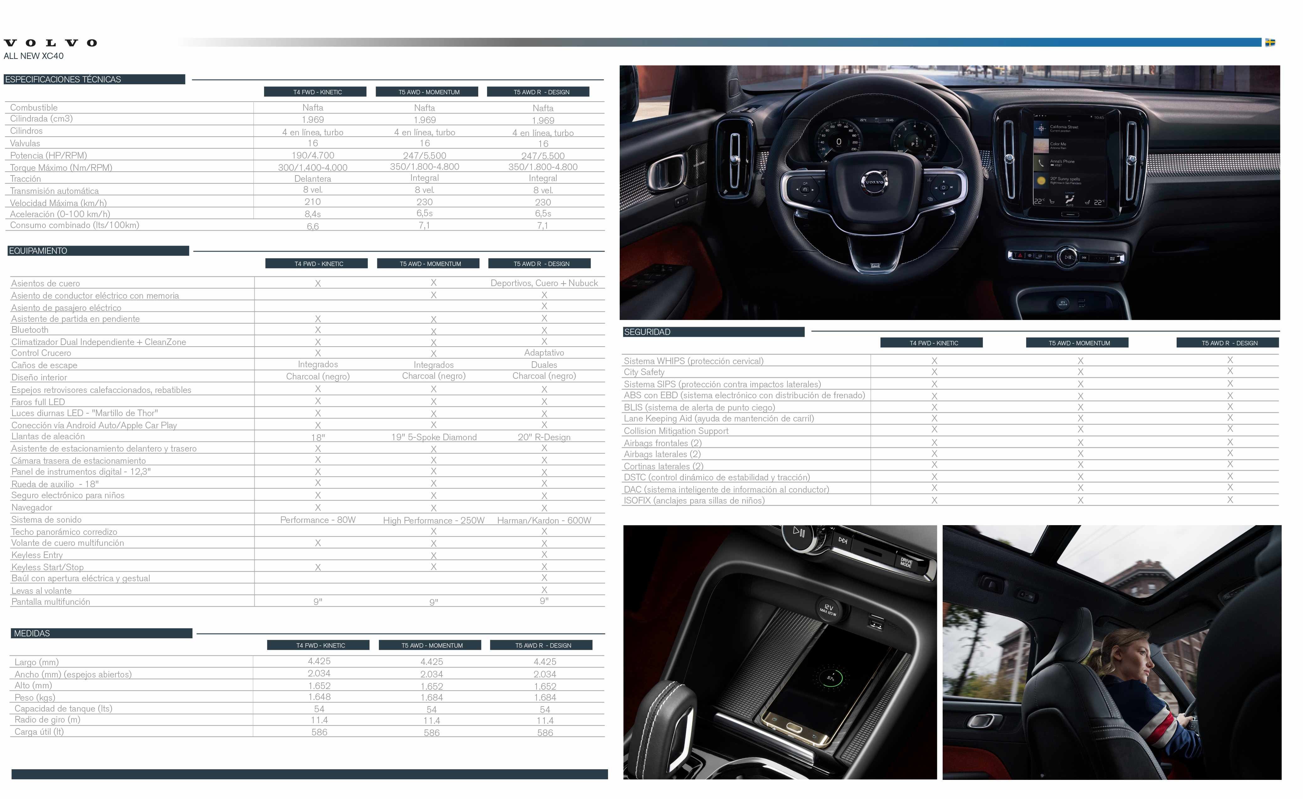 Tal como lo señalamos en la nota de lanzamiento (ver nota), este SUV llega inicialmente en dos niveles de equipamiento, R-Design y Momentum, ambas impulsadas por la motorización naftera T5 de cuatro cilindros en línea, 2.0 litros y turbocompresor, que desarrolla 247 CV y 350 Nm de torque, acoplado a una transmisión automática de 8 velocidades y sistema de tracción integral con reparto inteligente.