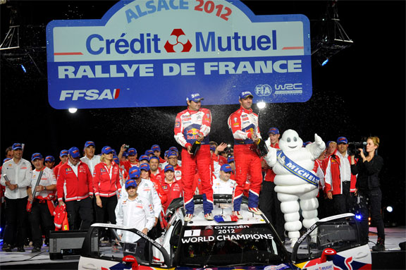 Sébastien Loeb y Daniel Elena han conseguido en Estrasburgo su octava victoria de la temporada y la número 75 de su carrera. Gracias a este resultado se alzan con el título de Campeones del Mundo de Rallys por novena vez consecutiva. Mientras en el podio Mikko Hirvonen y Jarmo Lehtinen sumaron los puntos que han permitido al CITROËN Total World Rally Team hacerse con el octavo título de Constructores en el Rally de Francia.