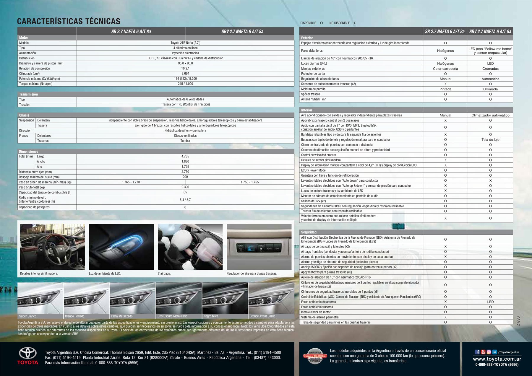 Caracteristicas técnicas de la Toyota Innova versiones SR y SRV