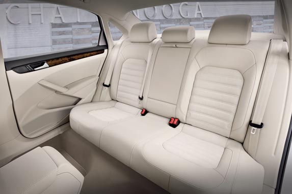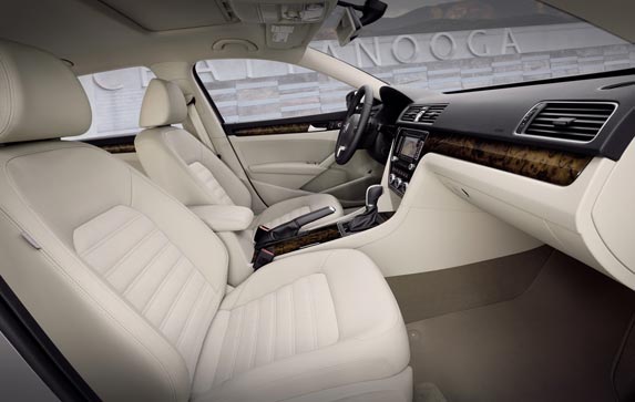 En el interior del Passat refleja la elegancia de modelos mucho más caros, las dimensiones del nuevo Volkswagen son mayores que las del modelo anterior; longitud 4.868 milímetros, anchura 1.835 milímetros y distancia entre ejes 2.803 milímetros. El aumento de la distancia entre los pasos de rueda del atractivo Passat se aprecia especialmente en la parte trasera y un baúl con un impresionante volumen total de 529 litros.