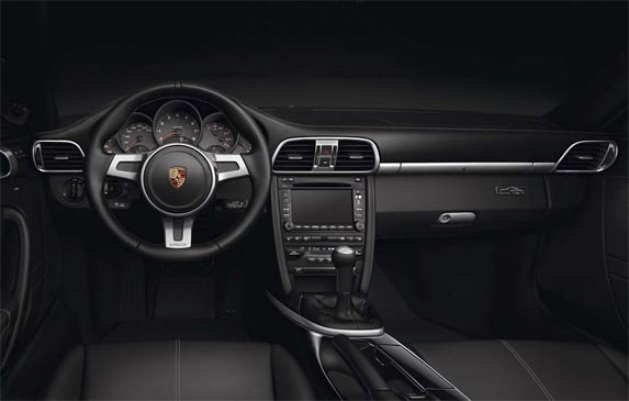 Al ingresar al interior del Porsche 911 sobre los zócalos de las puertas se encuentra la leyenda ‘Black Edition’ sobre placas de acero, las butacas están tapizadas parcialmente o totalmente en cuero, el panel de instrumentos es de color negro y sobre la guantera también aparece la insignia con la Edición Limitada, mientras las molduras del tablero, la palanca de cambios y las rejillas de ventilación tienen una fina terminación en color aluminio.