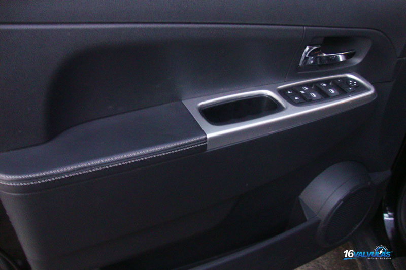 Las contrapuertas de la Jeep Cherokee tienen una excelente terminación, totalmente forradas en cuero. En la contrapuerta delantera se ubican los comandos de los alzacristales, los comandos de regulación eléctrica de los espejos exteriores, la traba de puertas y el bloqueo de los alzacristales traseros. Mientras en la contrapuertas traseras, de igual calidad y terminación que las delanteras, se ubica el comando del alzcristal.