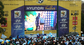 Invitados por Hyundai Argentina presenciamos en el Hyundai Fan Park de Plaza San Martín el encuentro en que Argentina se impuso por 3 a 1 a México en el partido por los octavos de final de la Copa del mundo 2010.