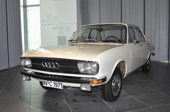 El Audi 100 fue inicialmente desarrollado en secreto sin el concocimiento por parte de Volkswagen por la inseguridad en la continuidad y futuro de la rama Audi en los años 60. La más importante característica de este automóvil era su peso ya que fue construido con conceptos técnicos modernos que le permitían ser solo un poco más pesado que el vehículo mas pequeño de los Audi. Poseía un motor de 1760 cm3, permitiendo desarrollar una velocidad de 156 km/hora y fueron construidos 827.474 unidades.