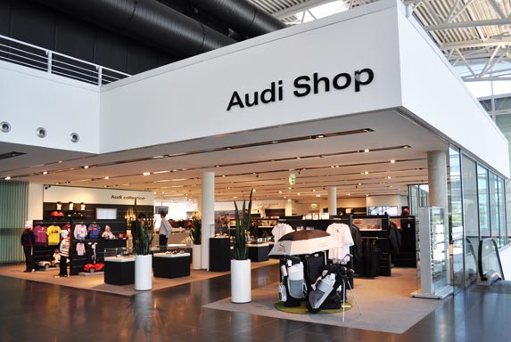 También el Audi Shop donde una variedad de articulos como prendas de vestir, autos en miniatura, etc pueden ser encontrados.