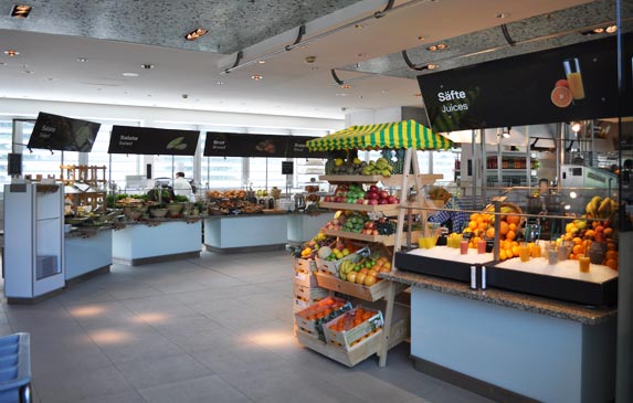El Self Service (Autoservicio) ofrece una gama diversa de cocina internacional y el restaurante de “Avus” en la primera planta abastece a gustos más exclusivos. Cuenta también con un Salón Bar donde se puede tomar un trago y una exclusiva tienda de vinos donde se puede elegir de una surtida variedad para llevar.